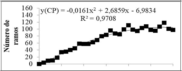 A Figura a seguir exibe os principais resultados desta parte do trabalho. Pela mesma observou-se que a matéria seca da planta inteira foi cerca de 50% superior na região quente irrigada que na região fria de sequeiro. As plantas atingiram patamares muito superiores em menor tempo com uma taxa de incremento muito superior que na condição fria/sequeiro. O Índice de Área Foliar (IAF) também foi superior na região quente/irrigada durante os 90 meses de avaliações chegando ao final do período com valores equivalentes. Na região quente/irrigada houveram também maiores oscilações no IAF em decorrência das colheitas que foram maiores (65% a mais de produtividade). O crescimento em altura também foi maior nas áreas quentes que atingiram mais cedo a altura limitante para a procedência de poda. A maior altura se relaciona ao maior número de ramos também 40% a mais na área quente/irrigada (100 x 140 ramos aos 90 meses). O volume da raiz foi praticamente o dobro na área quente/irrigada este parâmetro também favorecido pelo solo ser mais arenoso que na região fria/sequeiro.